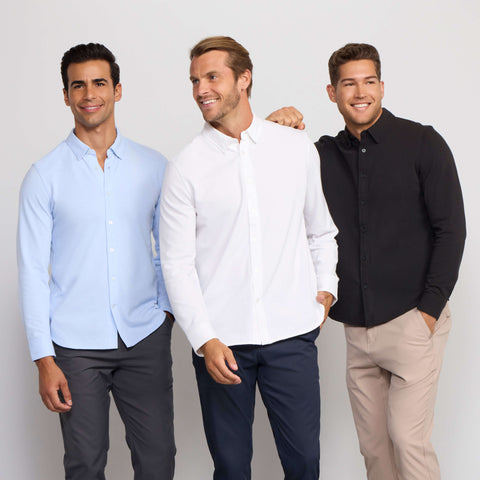 This isn't your average button down. It’s built to look sharp and stay that way. Made with a breathable cotton-rich piqué textured fabric that keeps you cool and comfortable all day.