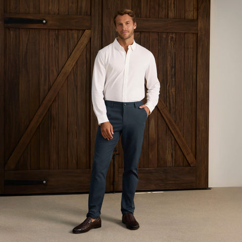 Designed for men who need more room to move in style. With added space in the seat and thighs and a tapered leg that sharpens your silhouette. Same elevated feel, now tailored to fit athletic builds.