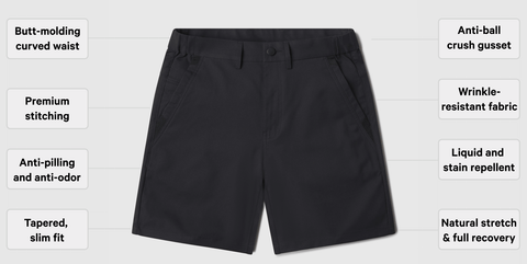 When your shorts don't fit you properly, you'll feel like they restrict your movement because they're too tight in certain places or too loose in others. This is a recipe for disaster when you're running around town doing errands. That's why we designed the Jetsetter Tech shorts with special microfiber stretch material that molds to your body so they fit perfectly without any restrictive pressure points, no matter your body type.