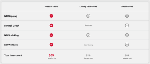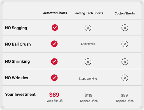 Sagging, shrinking, tightness in the wrong places. The truth is, other brands’ shorts are designed to be replaced. That’s why we engineered Jetsetter Shorts with innovative fabric and an always-consistent fit—for a flattering, go-anywhere pair that’ll stand the test of time.